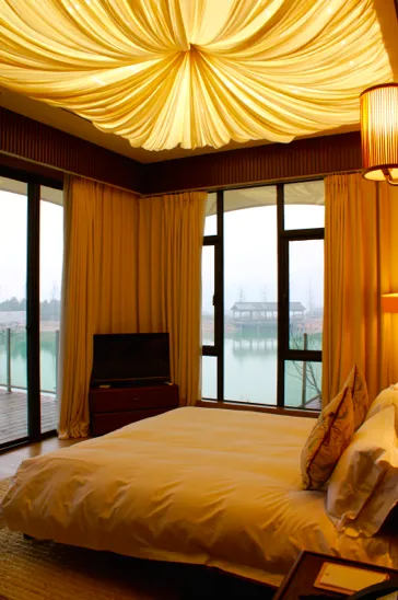射手与好友Ryan入住的是仅有的两间双卧大床豪华帐篷中的“汀州”,与另间“水裔”均取名于《楚辞?九歌?湘夫人》,其余帐篷取名也均源自诗经楚辞,彰显茶谷茶道之人文气质。步入帐篷内,空间通透开阔,完全称得起万亩茶园的气势,超大的浴缸与临水露台更是射手大爱。沏上一杯白茶,袅袅茶香于原木色调、简约质朴的居室内弥漫开来,心绪立时宁静舒缓了许多;香茗缓缓滑入喉间,仅存的些许俗世纷扰也随之烟消云散,心境竟也空灵了起来,也许这就是所谓禅茶的境界了吧。索性跌坐于草编地毯之上,感受着那地暖的温暖呵护,捧卷而读茶之经典,悦之。其间,间或与Ryan聊起某个愉悦的话题,会心之际,仿似又回到了多年前那个温暖的蒙古包,不过身心已是舒展于舒适许多的轻奢帐篷中了。至夜,KingKoil的床垫与TOTO的浴具让人于清新茶香中惬意地洗净铅华、甜美入梦,草本的洗浴备品则兼顾着品质与环保的承诺,而乐视TV更是体贴着互联时代人们的娱乐需求。