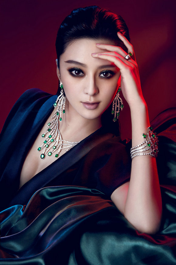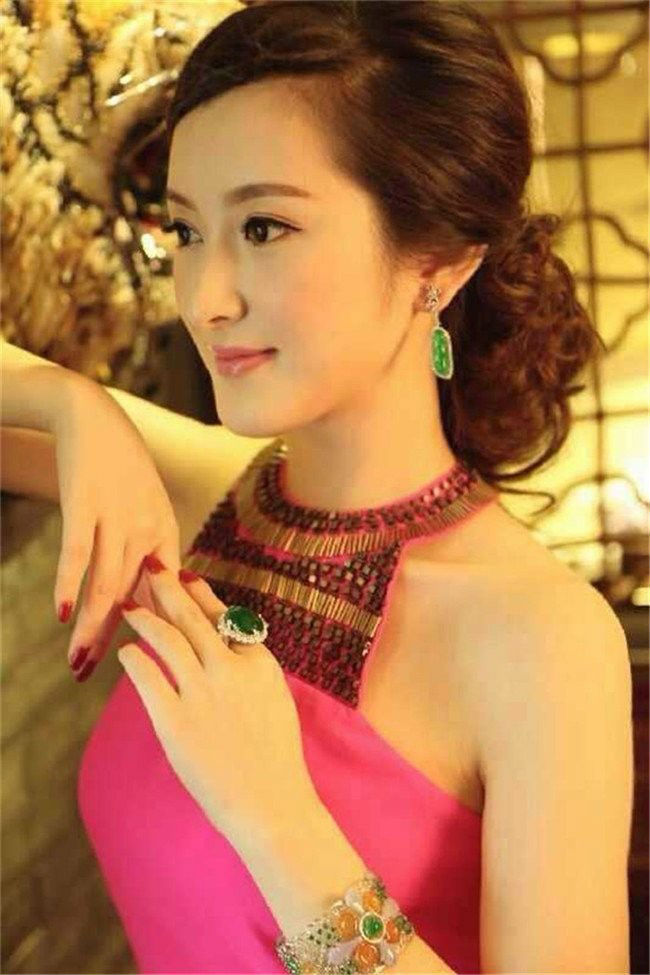 佩戴的这两件翡翠 素面翡翠蛋面镶嵌而成的,尺寸在30*20,极品种水色,蛋形饱满,圆润。价格在2000万左右。