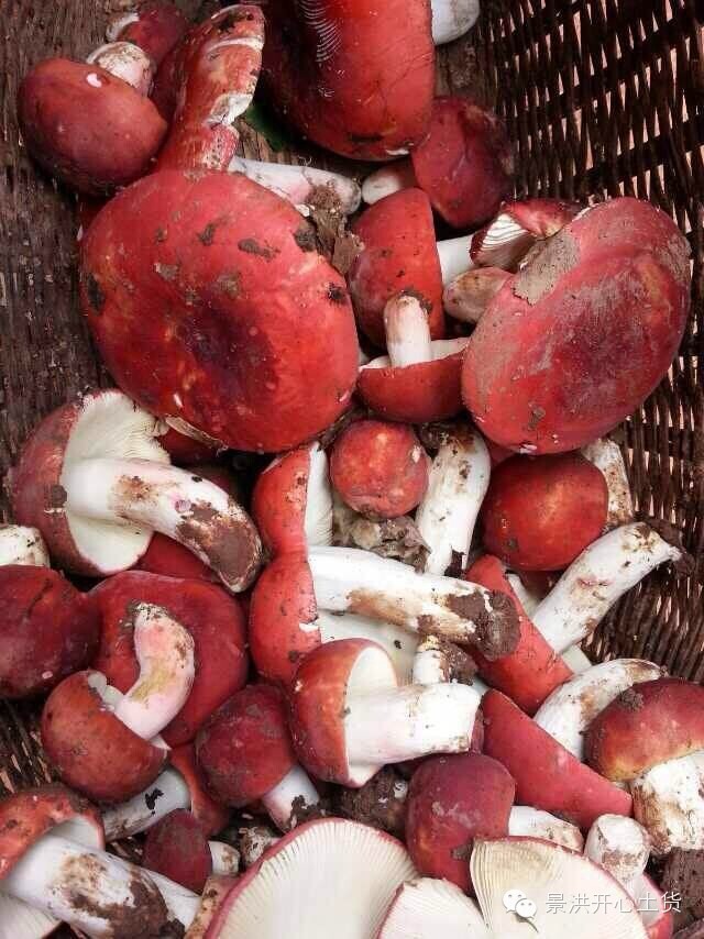 西双版纳?原始森林?【野生红香菌】只生长在人烟稀少的崇山峻岭和深山密林里,在温度高、湿度大的地方生长,生长期较 慢,数量极少,人们采摘野生红香菌十分艰难。野生红香菌是一种极名贵的珍稀食用菌,它全身红色,亮泽艳红,肉质肥厚、味道鲜美、营养丰富,被誉为【"香菇之王"】。野生红香菌有比其它香菇类具有更高的蛋白质、氨基酸、丰富的矿物质和维生素及多种药用成份。【女生怀孕、分娩后身体虚弱,红香菌是最好补充营养,并具有预防肿瘤及提高人体免疫力功能作用】。目前,人工栽培红香菌尚未成功,是珍稀野生食用菌品。
