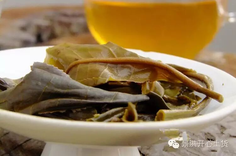 贺开古树条索黑亮紧结、稍长,汤色金黄明亮,稍苦涩,涩显于苦,苦化甘较快,涩稍长,汤质饱满,山野气韵较强,杯底香明显且较持久。