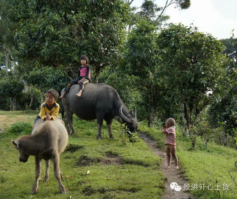 古茶园猪游荡、牛儿吃嫩草、鸡儿吃虫子、小鸟嬉戏、花果藤蔓挂满树干,多种动植物和谐共生.