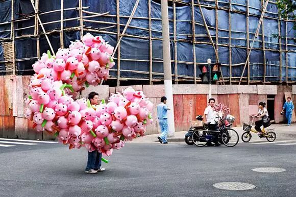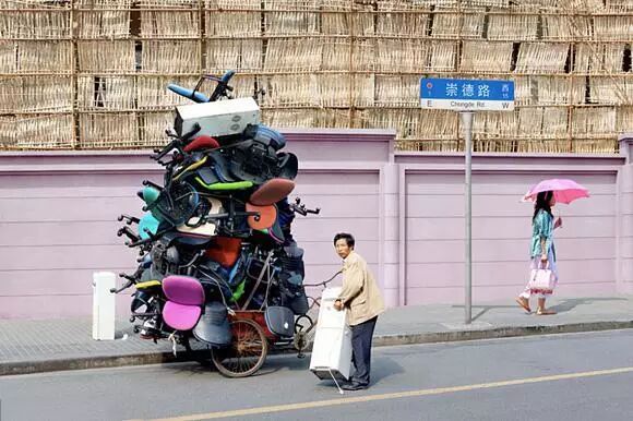 照片拍摄于2009至2010年的上海。当然,通过颜色也可以看看出,摄影师在照片的后期加入了自己的色彩。Alain Delorme想以更艺术的手法来表达自己的思想:这些不断堆砌的物品,就象征了以不断出现的新建筑为代表的城市扩张。