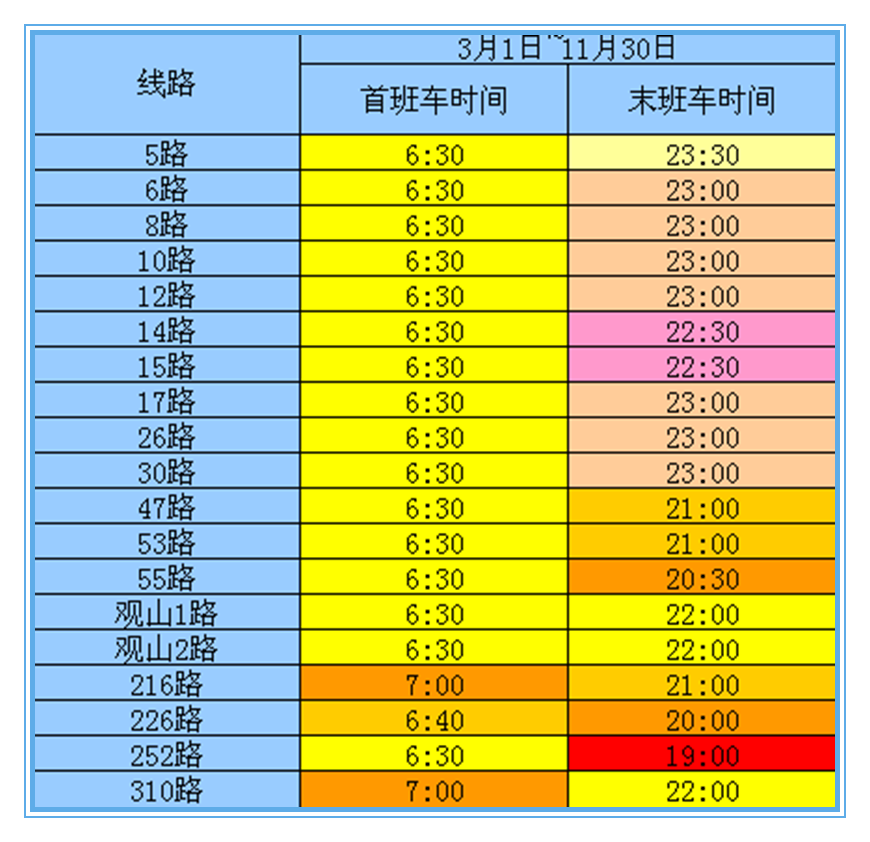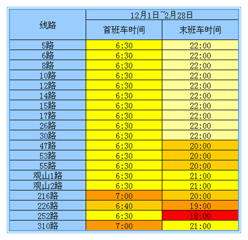 从3月1日开始,贵阳19条公交首班车时间不变,末班车时间根据“冬、夏时制”进行了调整。而最近天气依旧寒冷,随后的几日气温也将每日愈下,可千万不能再错过末班车,让自己遭罪哦!