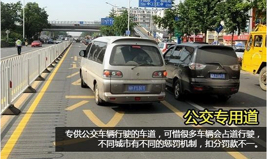 公交专用道,通常会在地面用汉字标出。比如农业路的BRT车道,在限行时段进入公交车专用车道,罚款记分一样都不会少。