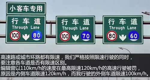 一些城市环路或高速路虽有最高限速,不过要注意个别路段,每条车道限速不同,行驶中多留神。