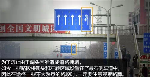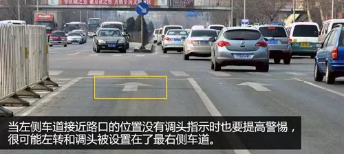 临近路口一定要提前观察提示牌,一旦发现不能掉头,千万别抱侥幸心理,下一个路口掉头也不迟。