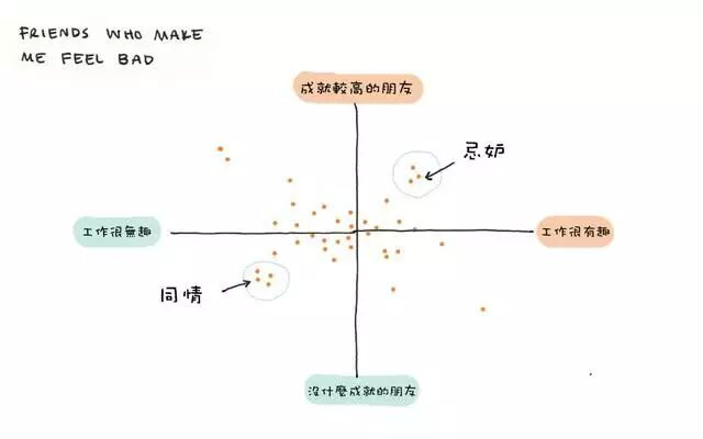 20~25岁的时候看到工作很无趣的人或是没有成就的人会升起一股同情心,到了30岁之后对那些工作有趣、成就又高的人感到忌妒。