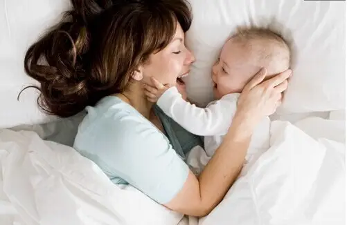 孩子一动就马上醒来轻轻的哄着。