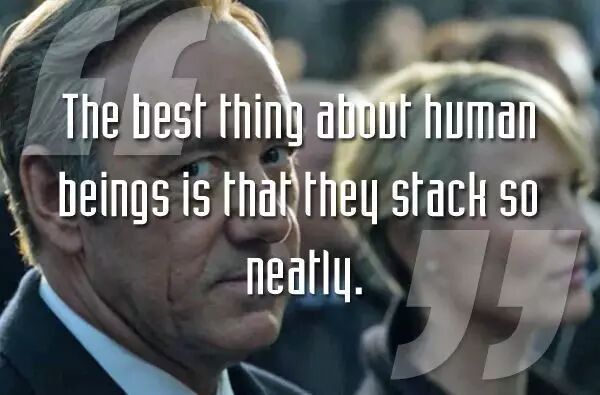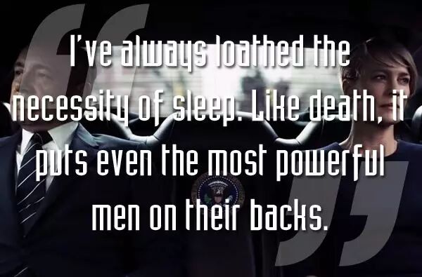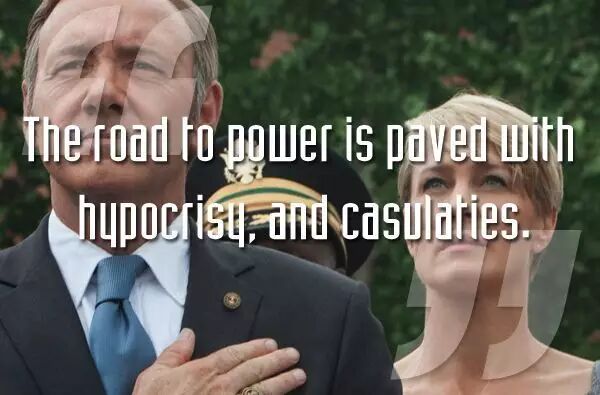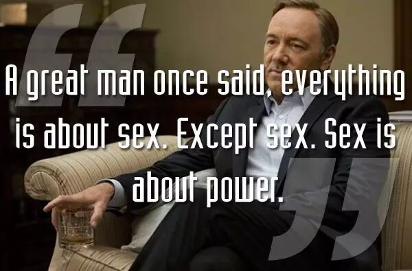 一个伟人曾说,世界上的所有事情都是和性有关,除了性本身,性是关于权力。(Frank 和 Zoe 做爱完之后所说。原句出自奥斯卡?王尔德的信件。)