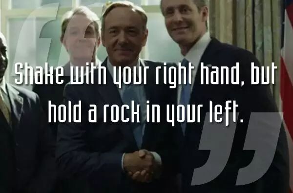 完整第三季《纸牌屋》已登陆 Netflix。闭关追剧之前,有必要温习下木大人(Frank Underwood)在《纸牌屋》前两季中的经典语录,这是华盛顿的孙子兵法,这是野心家的上位指南。
