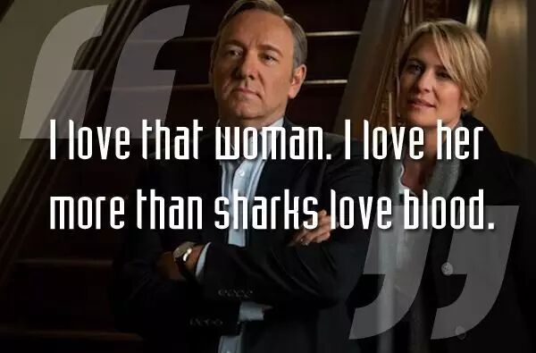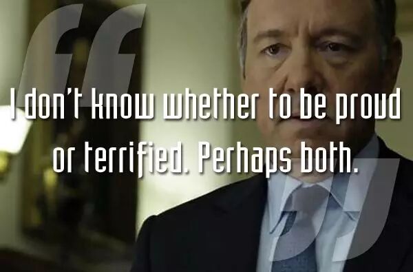我不知道我是该骄傲还是害怕。也许都应该。(当 Claire 与摄影师之间的绯闻被曝光,Claire 撂下狠话,Frank 做出如上独白。)