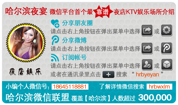 搜索微信号:『hrbyeyan』腾讯微博 搜索 哈尔滨夜宴哈尔滨夜宴――夜幕下的哈尔滨飘散着浪漫,弥扬着悠闲,迸发着激情;发动机的喧嚣响起,红酒与高跟鞋邂逅,当一切离你那么近,COME ON,收起矜持,放下闷骚,享用这场饕餮盛宴吧。《免费招待名额欢迎索取,属于你和TA的潮流。》在【哈尔滨市区内】有任何需要【爆料或求助】,请联系小编,小编个人微信号:hljbbs 小编会尽量帮助你的。