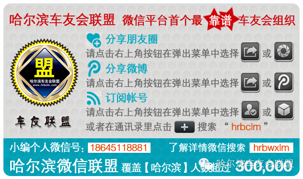 哈尔滨车友会联盟官方微信平台:hrbclm