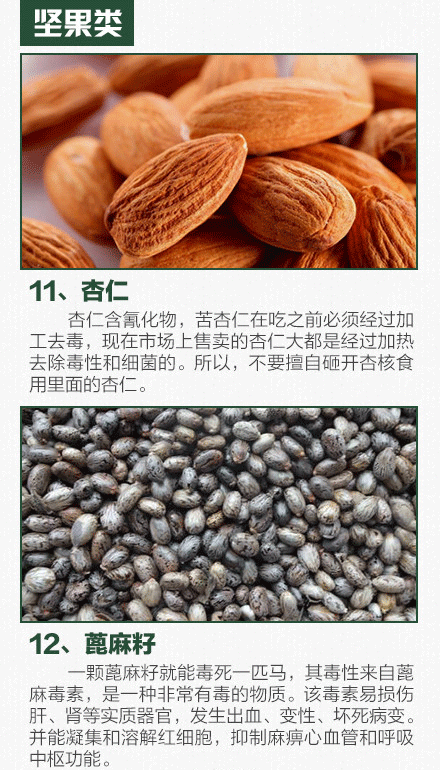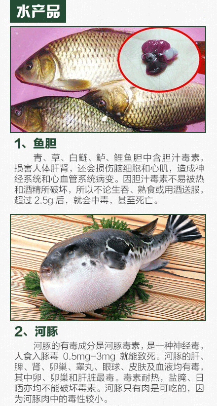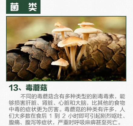 水产品、果蔬类、坚果类、菌类……哪些是有毒的“杀手”?看下图↓识别能引起中毒的食物
