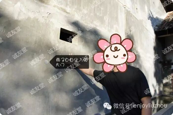 我先来给大家科普一下,我上面那个口,是让燕子可以自由进出的“大门”,这样的大门整座屋有好多个。