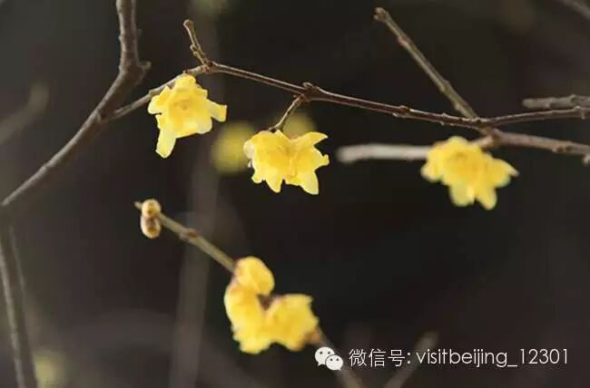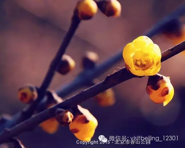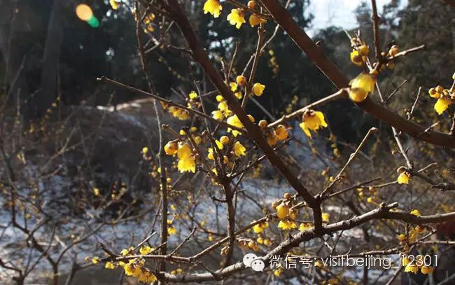 腊梅花瓣较小,亮黄的色泽,在冬日暖阳的照耀下熠熠生辉,腊梅发出那幽幽淡淡的阵阵沁香,向人们展示着“凌寒独自开”的独特景观。阳光下的腊梅,已成为香山的第一抹春色。