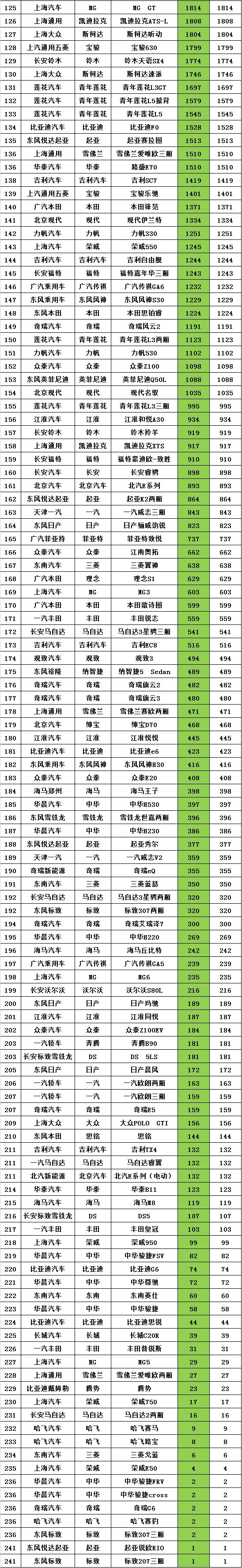 轿车销量龙虎榜: