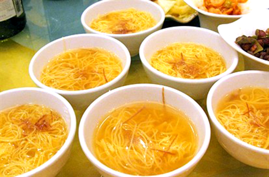 金丝面是山东安丘汉族传统名吃,始于景芝,已有300多年的历史,与三页饼堪称景芝白案佳品的孪生姊妹,为贩酒客商常用食品。金丝面色黄丝细,犹如金丝,软硬适度,清香可口。