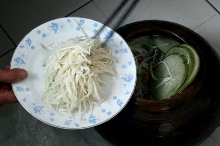 诸城辣丝子是诸城市的一道汉族传统名吃,属于家常菜,主要原料为辣疙瘩(芥菜疙瘩)、萝卜片、花生米等。具有酸、辣、甜、香,清淡爽口,提神通气,增进食欲,是下酒佐餐的好味料。