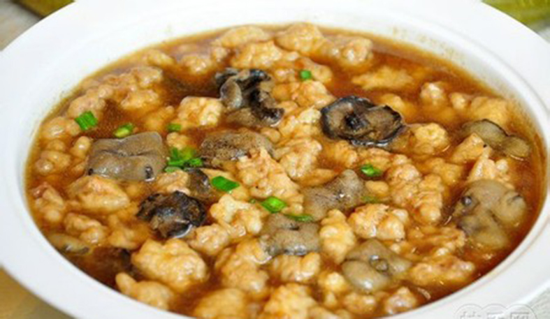 筢菇是发源于山东寿光地区的一种汉族传统名肴,主要材料为萝卜,绿豆,青菜叶子等,制作流程较为复杂,口味清香独特。以传统石磨手工制作的筢菇口味最佳,而机器自动化生产改良的筢菇口味则稍逊。