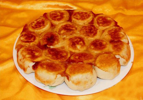 因做火烧的面很硬,手揉不动,需用木杠翻压,故名。其形圆、个头大,每个约250克,边厚里薄,中间隆起。其特点是面硬、烤烙熟透而无糊斑,吃起来脆口,越嚼越香。收藏期长于其他面食。