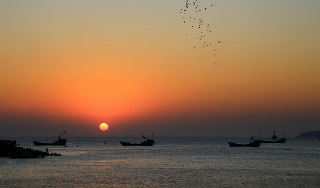 在金山嘴渔村杭州湾最佳日出观赏点观赏旭日东升的壮美景致。甜蜜的恋人,怎能错过金山嘴渔村的日出!头靠头,肩并肩,手牵手,一起享受浪漫时光吧!