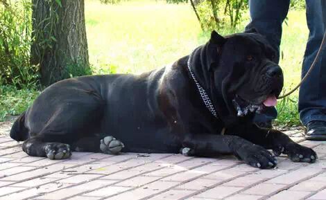 这也许是世界上最让人恐惧的猛犬了:暗黑色的身体、强壮而彪捍,似乎有用不完的力量,低吊的眼角,冷漠而阴沉,让人觉得不寒而栗,它是世界上最强横的斗犬之一,它曾经是黑手党的最爱,用来昭示恐怖和权利。看它那满身的横肉就知道这位决不是善主。它是世界上最危险的犬种之一,因为它一旦攻击,就是不死不休,而且喜欢吞吃被它杀死的猎物,包括人。在猛犬界被誉为最为残忍的杀手。由于以上原因,加上它恰恰可以被训练(但不容易训练),成功训练后将是世界上最优秀的护卫犬之一,任何敌人都会感到那颤抖灵魂的恐惧。