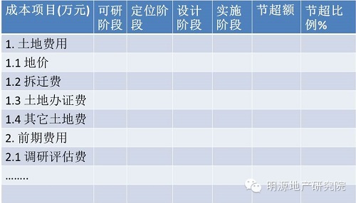 可行性研究阶段:完成土地吸纳后重新测算利润及成本,为项目成本控制目标值;