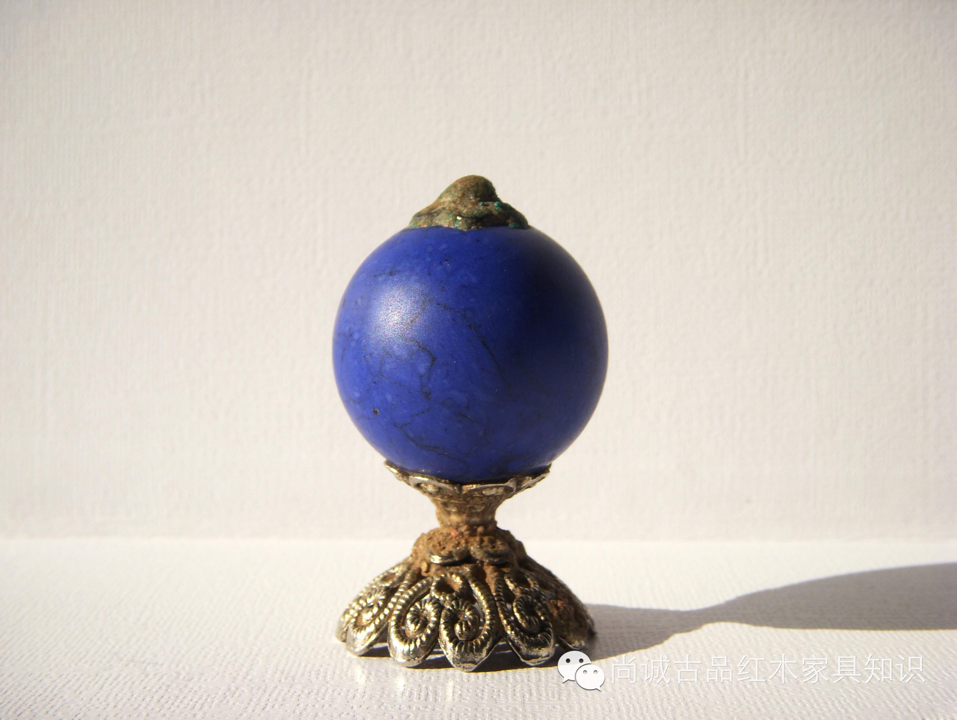 青金石是四品官员的顶珠。其拥有独特的蓝色、深蓝、淡蓝及浅青多种颜色,非常漂亮,是世界上最古老的玉石的一种。