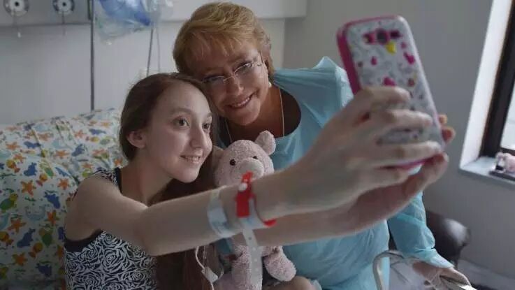 2月28日,总统巴切莱特来到医院看望毛雷拉,并与其自拍合照。