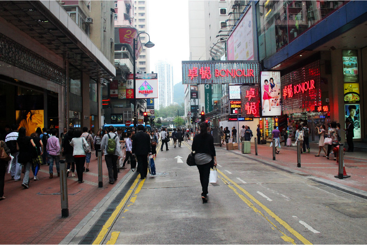 铜锣湾(因为粤音比较顺口的关系,部分香港人会把铜锣湾读成铜锣“环”,使三字都变成阳平声)位于香港岛的中心北岸之西,是香港的主要商业及娱乐场所集中地。区内有多家大型百货公司及大型商场,包括:崇光百货、时代广场、利舞台广场以及世贸中心。铜锣湾购物区亦是全世界租金第二贵的地段,仅次于美国纽约的第五大道。铜锣湾不仅是香港最繁忙的购物和饮食区,也是香港不夜市区之一。