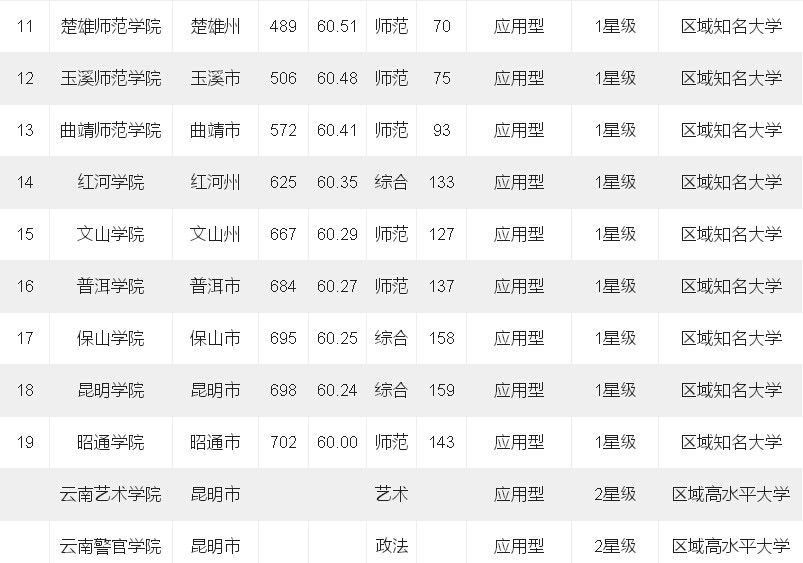 2015云南省最佳大学排行榜