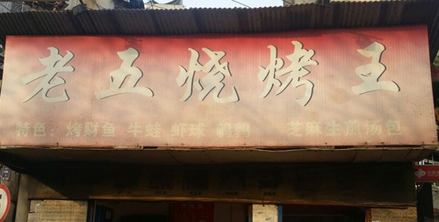 不是那个蛮有名的老五烧烤,而是个比较小的苍蝇馆子,蛮破个店面,光看外表估计冇得人愿意进去,但是开了很多年了,地大的学生很喜欢去这家吃。有些东西都是现杀现烤,比较放心。重点推荐烤腰子和鸡爪,味道很好,鸡爪很烂,嘬一口,肉都下来了,吃起来很方便。除此以外还要推荐他们家的煎汤包,表皮灰常酥的,很值得尝试啊。老板是一对父子,服务很好也很热情。