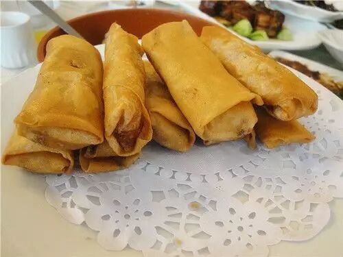 就连看上去毫不起眼的三丝脆皮春卷也让人惊到了。鸡丝、笋丝、香菇丝包裹在酥脆的春卷皮里,馅香合着的面皮脆香,好吃极了。
