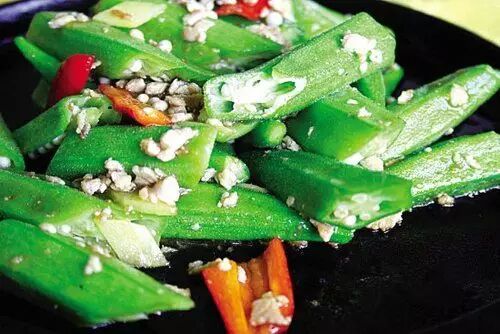 烤秋葵也是一道值得品尝的新菜,做法非常简单。用铁板煎熟后,撒上胡椒末,烤制的香和秋葵的甜混合在一起,清香四溢。
