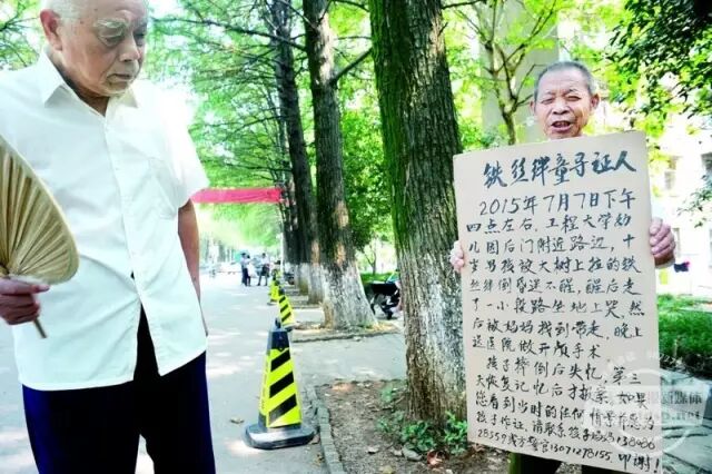 为了寻找孩子摔伤时的目击证人,李爹爹从8月25日开始,每天从早上6点到下午5点,到事发现场举牌蹲守,但至今没有任何目击者与其联系。他希望能有目击者站出来,帮助他们了解孩子摔伤的真实情况。