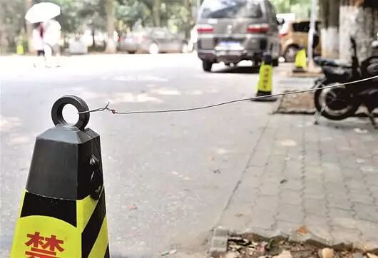 而这种拴有铁丝的隔离桩,在武汉大街小巷真的是随处可见,也正是它因为小得难以被人发现,才会造成一些伤害。