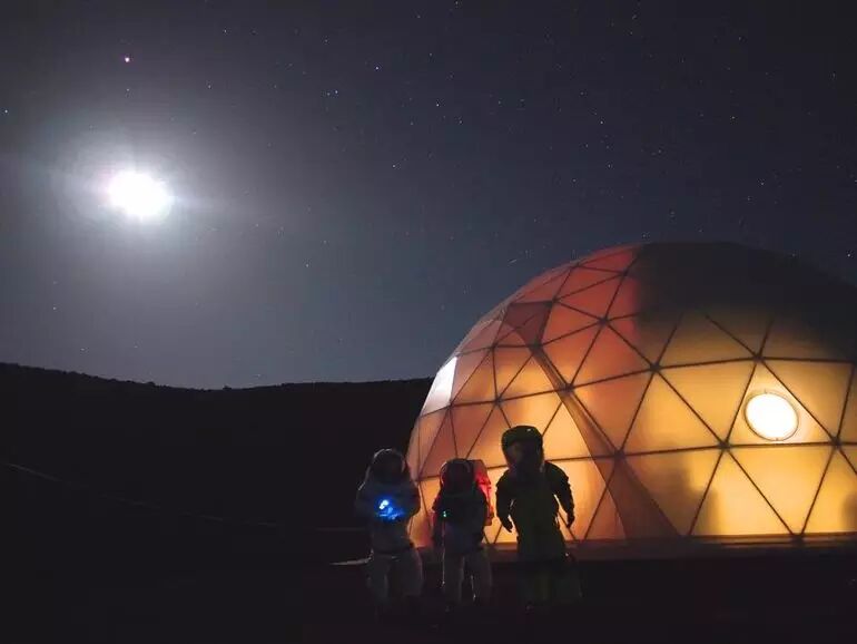 上月末,在夏威夷,六名志愿者把自己封闭在玻璃圆顶的栖息地当中,开始了长达一年的火星任务模拟。