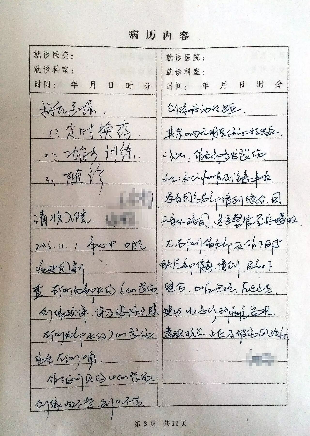 医院病历显示,杨云右颌脸部裂伤,伤口约5厘米。杨朵伤势更为严重,“全身多处刀砍伤”。
