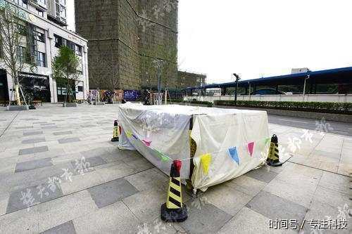 图为事发处已经被封锁,落地灯上无任何警戒标识