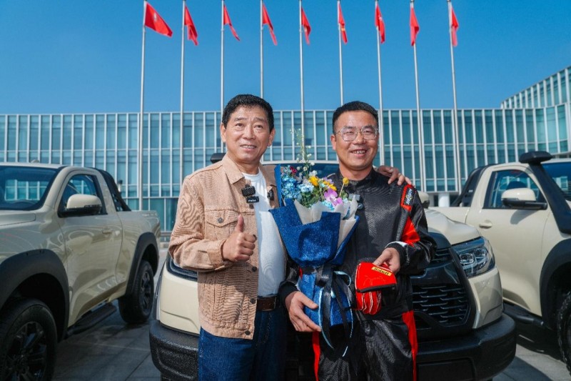 9 月,赛级皮卡V6 火炮首批车主交车仪式在长城汽车技术中心举行,长城汽车董事长魏建军兑现承诺,亲自为首批车主交车,并为V6火炮阿拉善英雄会出征仪式授旗。这场交车,不只是一次仪式,更是一场“交底”,也是一次“交心”。交出的是V6火炮赛道淬炼的真实力,是“以赛验车”“以赛促研”的硬核开发理念,是赛事共创的开放生态,也是越野精神的交托与传承。