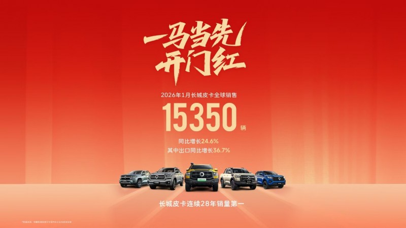 从城市到乡村,从高速公路到非铺装山路,从冰天雪地到温暖如春——2026款越野炮,以“硬派性能、强硬动力、硬核智联、硬甲护航”的全能实力,正悄然重塑春节出行的新定义。这份实力,源自长城皮卡连续28年销量第一的深厚积淀,今年1月全球销售15350辆,同比增长24.6%。作为家族的荣耀担当,长城炮累计63个月销量过万,蝉联中国皮卡销量冠军,用近80万全球用户的信赖,为每一次出发写下坚实注脚。