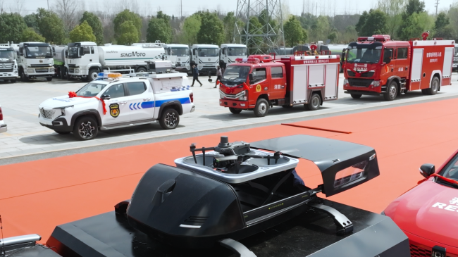 “此次我们发布了涵盖智慧公路、智能城管、环卫督查、公安特警、应急救援等智能特种车辆产品矩阵和行业解决方案。以城管、消防场景为例,借助无人机、红外热成像和AI智能识别及主动预警等技术,可高效识别隐蔽排污、夜间违规施工、火场热源分布等情况,极大拓展了专车的感知维度,大幅提升城市管理的问题发现率与监管精细化水平 ”,湖北中科智能汽车研究院工作人员表示。