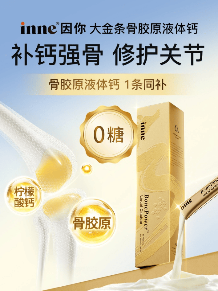 inne大金条骨胶原液体钙的推出,不仅是对“骨胶原液体钙”学术共识的具体实践,更推动钙营养行业从“单纯补钙”向“锁钙护骨”跨越式升级,展现了营养干预在骨骼健康管理中的重要作用,为预防“人生最后一次骨折”提供了精准、有效的营养策略。