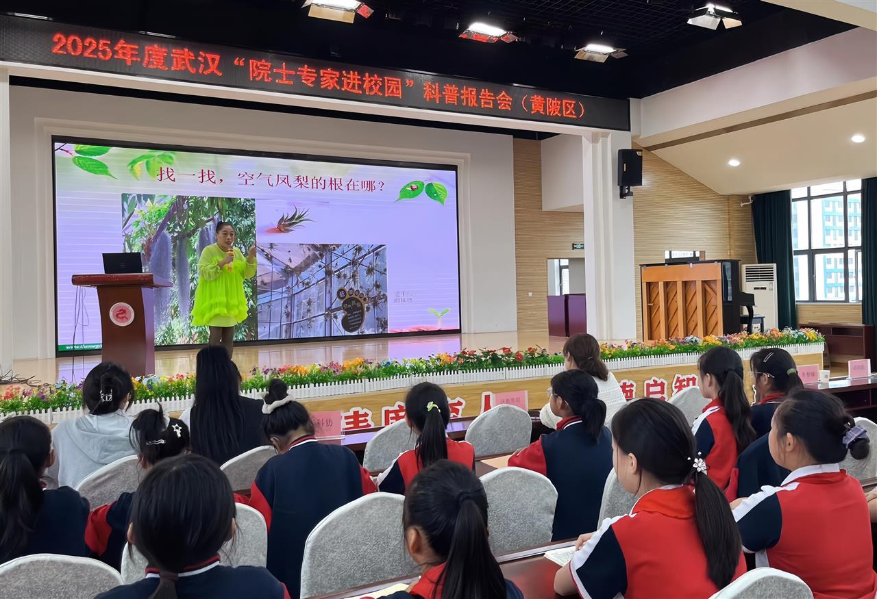 报告会特邀武汉科学家科普团成员、被誉为“花博士”的知名科普教育专家李俊皞老师担任主讲。李俊皞老师长期致力于青少年科普与自然教育工作,经验丰富,深受学生喜爱。她以“生命之花的绽放”为题,用生动形象的语言和互动式的讲解,为同学们开启了一段奇妙的植物世界探索之旅。