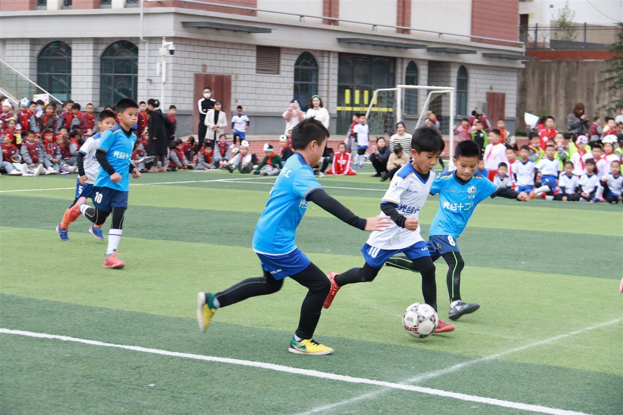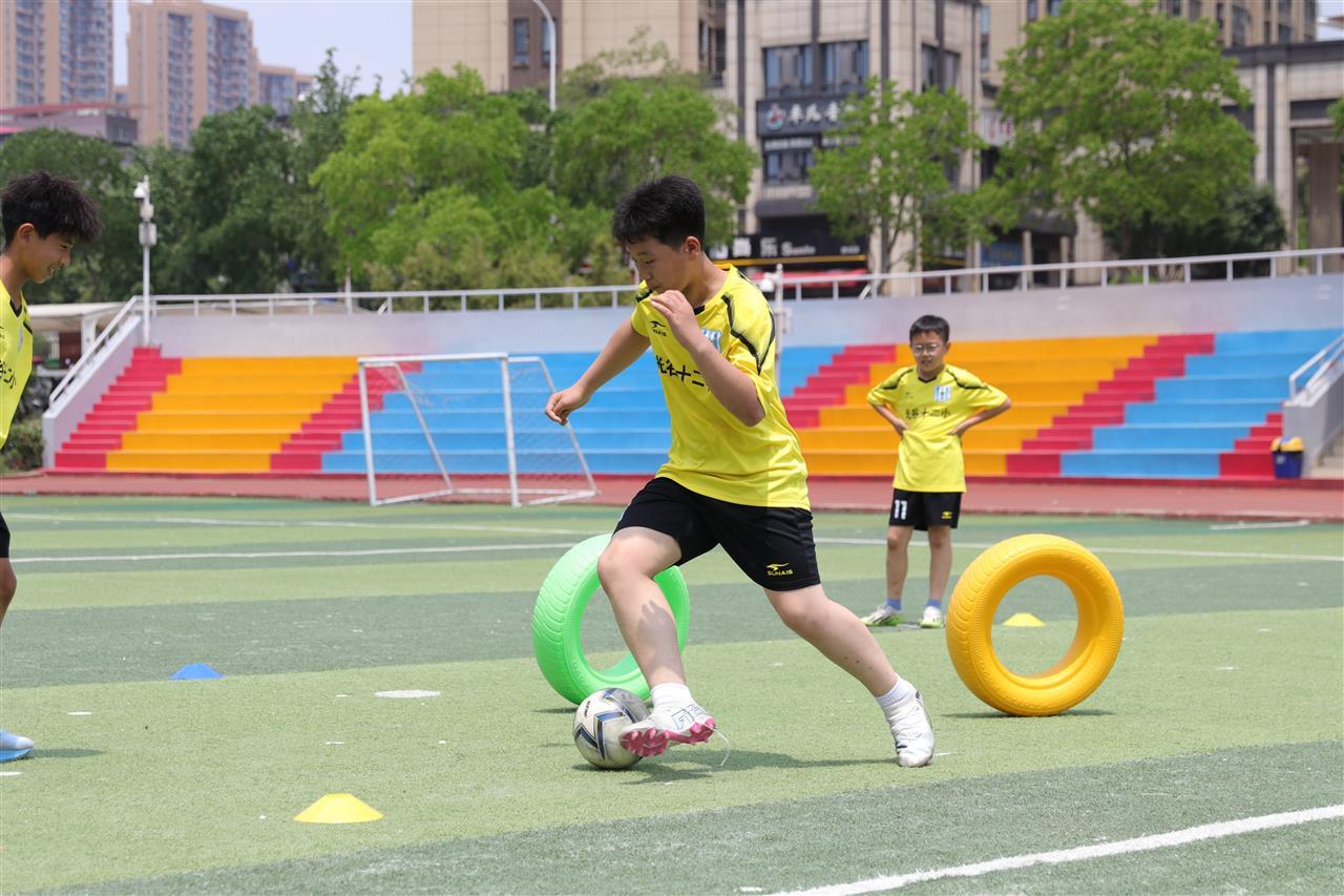 其实,足球出成绩的周期比较慢。业内人士介绍,一支从零开始的小学足球队,若能满足“选对人、教得好、练得勤、赛得多、有支持”,4~6年是冲击区级冠军的合理周期。任培华结合自身经验,在足球队选材和训练上提出了许多妙招:选材时一看兴趣,二考球商,三测身体素质;日常训练时,他一改传统分解式训练的单调乏味,创新性地将战术演练变成趣味游戏,把职业球员的绕桩带球训练改为“丛林探险”,于是,学生在躲避“轮胎陷阱”时便用脚背外侧完成规定线路的突围,每成功穿越三个关卡能获得射门解锁资格,防守球员站位也变成了橙色轮胎矩阵,还有迷你球门对应实战中的瞬时机会捕捉……当孩子们为争夺“突围勇士”徽章展开组别对抗时,不知不觉已经完成了上百次变向控球训练。