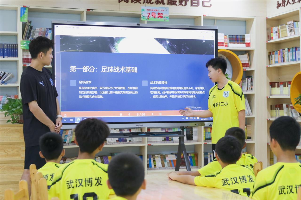 在全面普及校园足球方面,任培华也下足功夫,设计了班级联赛和“足球嘉年华”活动课程。如今,在光谷十二小,课间操音乐里融入了桑巴鼓点,走廊里有学生自创的足球漫画长卷,足球知识擂台赛很受学生、家长欢迎,班班都有了足球队。2024年,该校被教育部授予“全国青少年校园足球特色学校”。