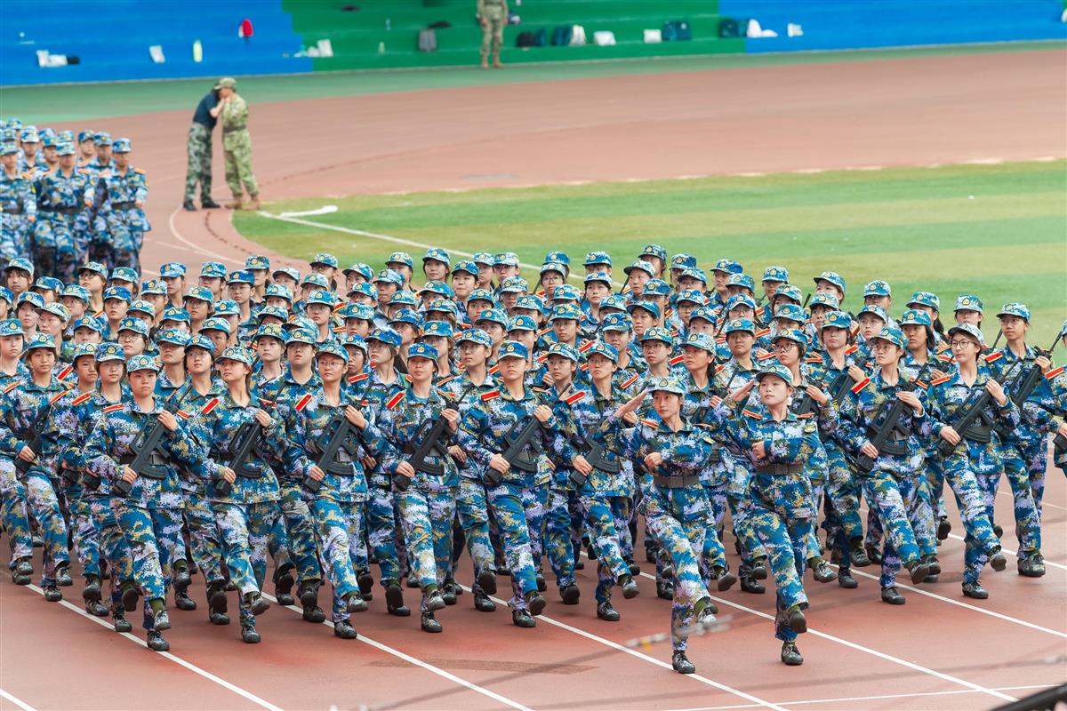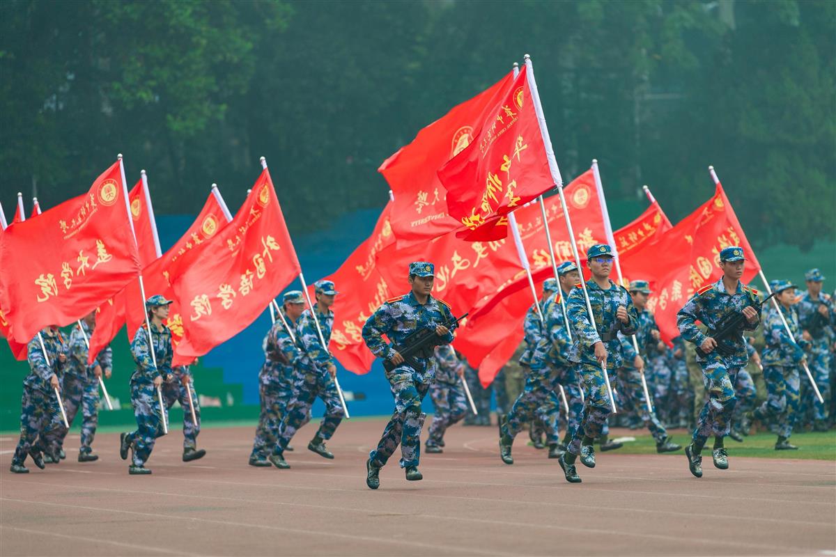 开学典礼后,2025级本科新生进行军训总结汇报表演。整齐的步伐和响亮的口号响彻体育场上空,破锋八刀方阵、匕首操方阵、应急棍术方阵及战术综合演练等表演项目依次展示,体现出军训的扎实成果和新生昂扬向上的精神风貌,在大学生活的开篇写下了奋进、坚韧的一笔。