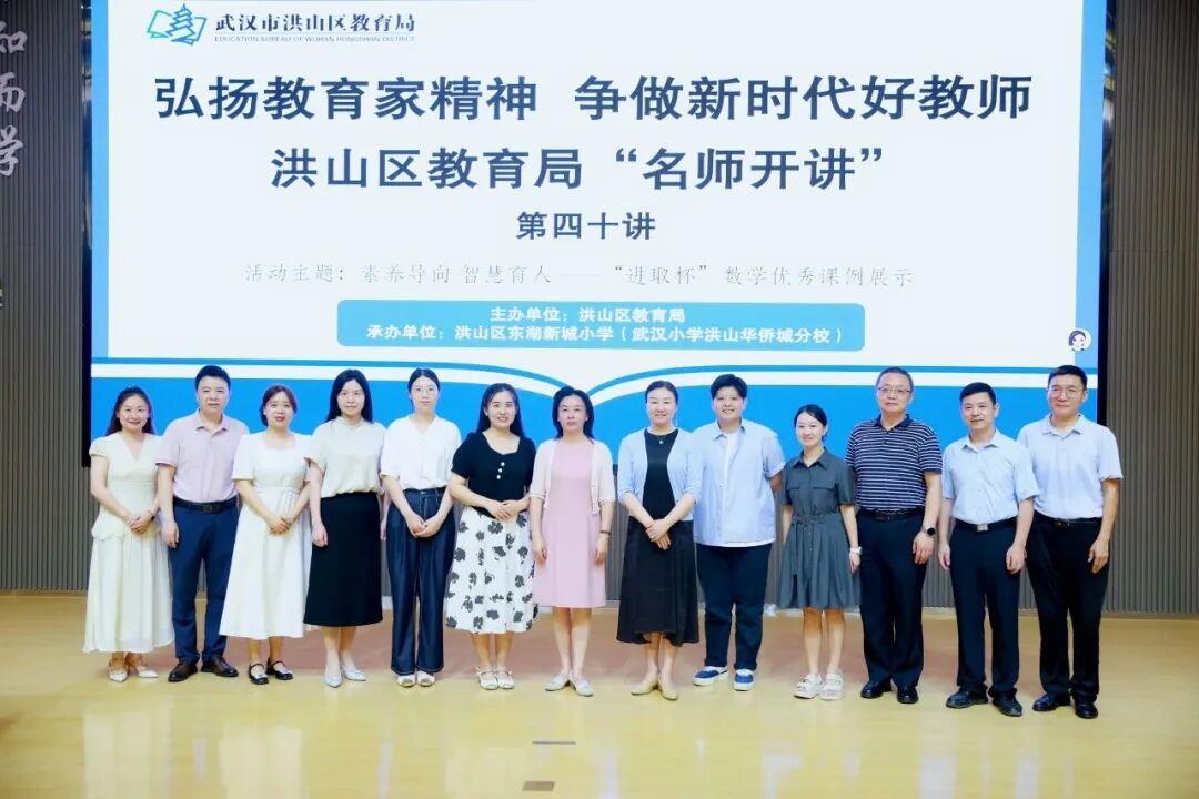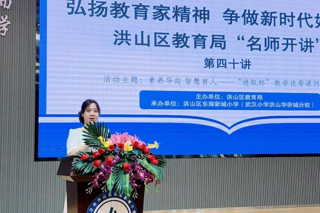 近日,武汉市洪山区教育局“名师开讲”系列活动第四十讲在洪山区东湖新城小学报告厅举行。本次活动以“素养导向 智慧育人——‘进取杯’数学优秀课例展示”为主题,通过四节“进取杯”优秀数学课例展示,为区域小学数学教学改革搭建起高质量交流平台。