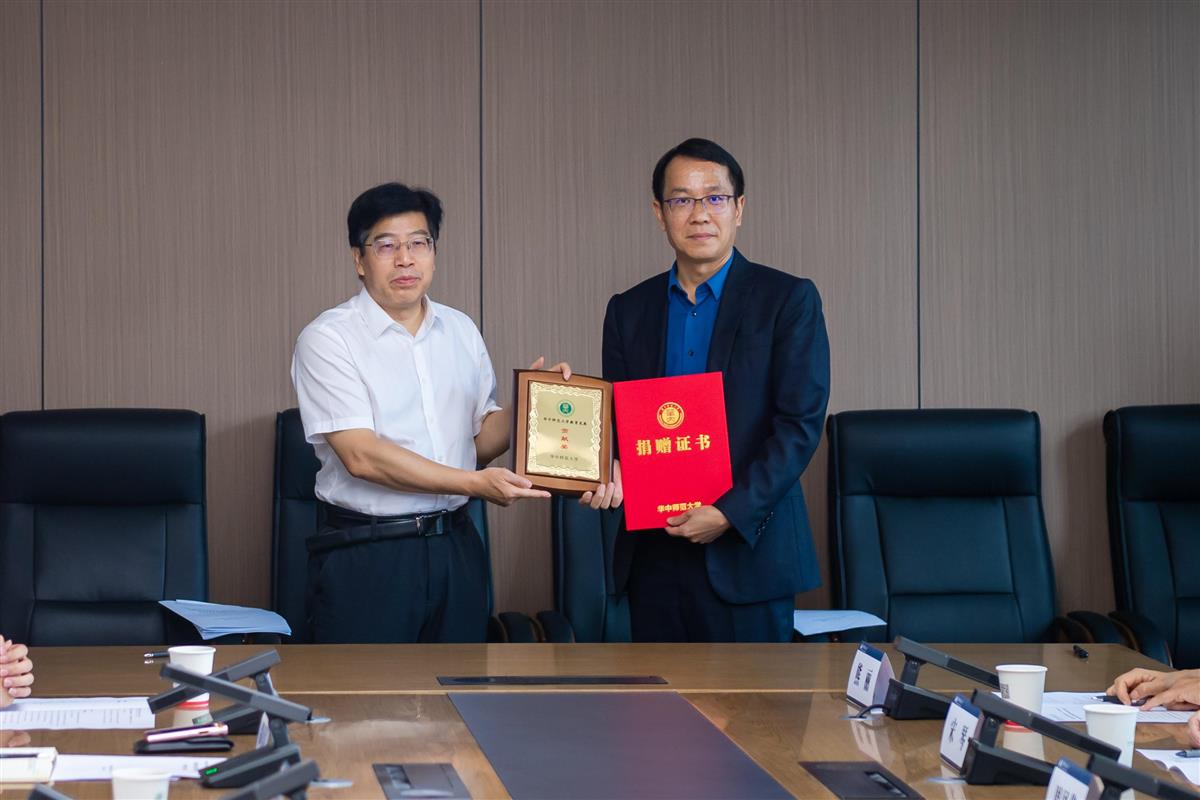 活动伊始,华进联合专利商标代理有限公司与华中师范大学共同签署了捐赠协议。根据协议,华进公司捐资50万元设立“华中师范大学逻辑学教育发展基金”,用于支持华中师范大学逻辑学教育发展。华中师范大学校长彭双阶,代表学校向胡杰董事长颁发捐赠证书、纪念奖牌及校方纪念品。